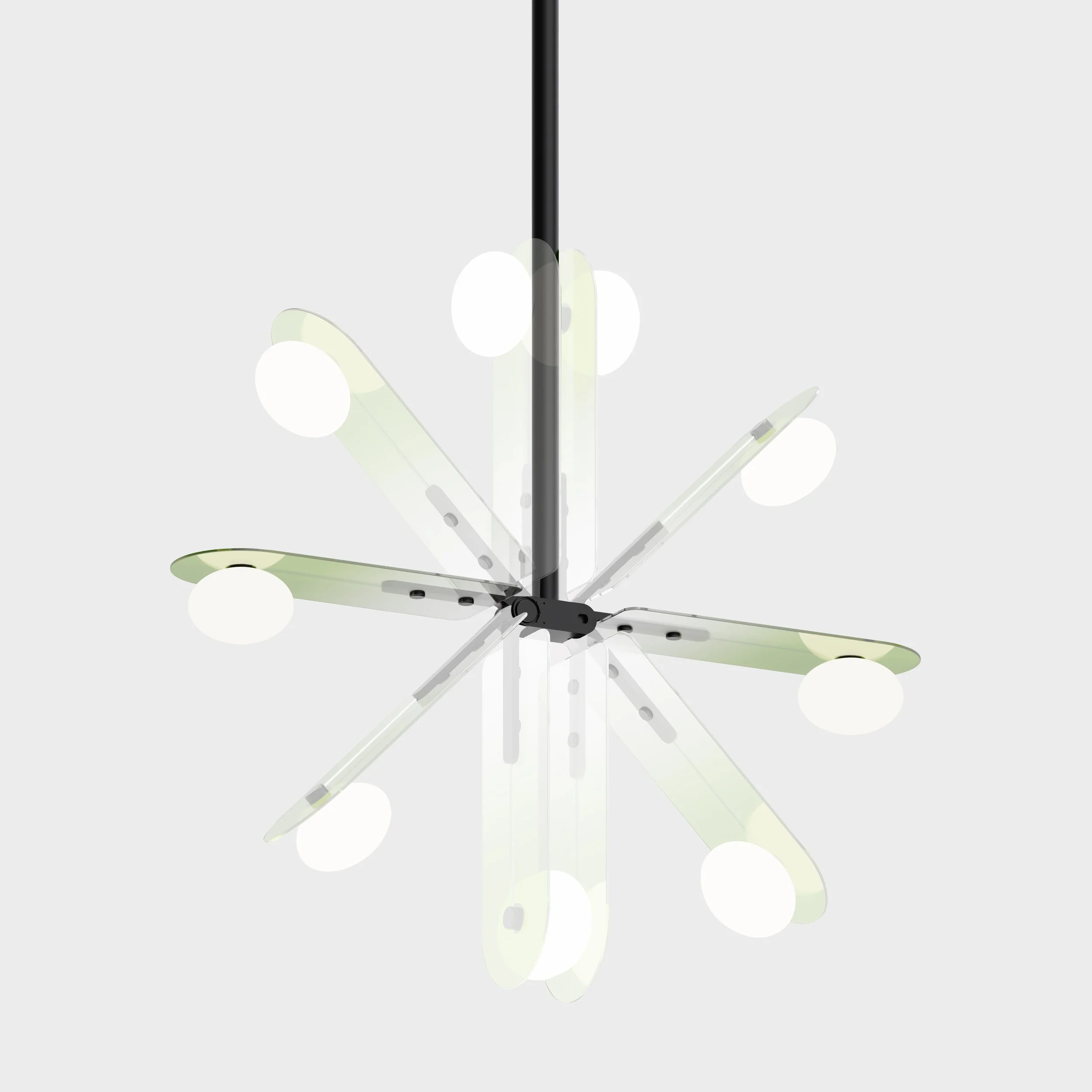 A symbol of transformation and connection. This meticulously designed and crafted suspended ceiling light represents personal growth and spiritual awakening. With adjustable glass wing attachments from 0-180 degree span and a unique custom built push-button mechanism, CHRYSALIS can be configured in 24 distinct positions and offers versatile lighting options. Its beautiful ombre colours evoke deep emotions and a sense of wonder. Possessing this timeless fixture captures both the continuity of life and cherished memories and acts as a tangible reminder of life's ever-changing nature.
